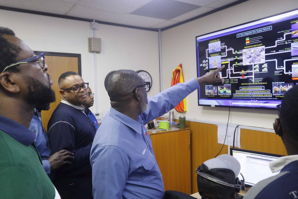 The EVP being briefed about CNL’s integrated operations at the Escravos Integrated Operations Centre