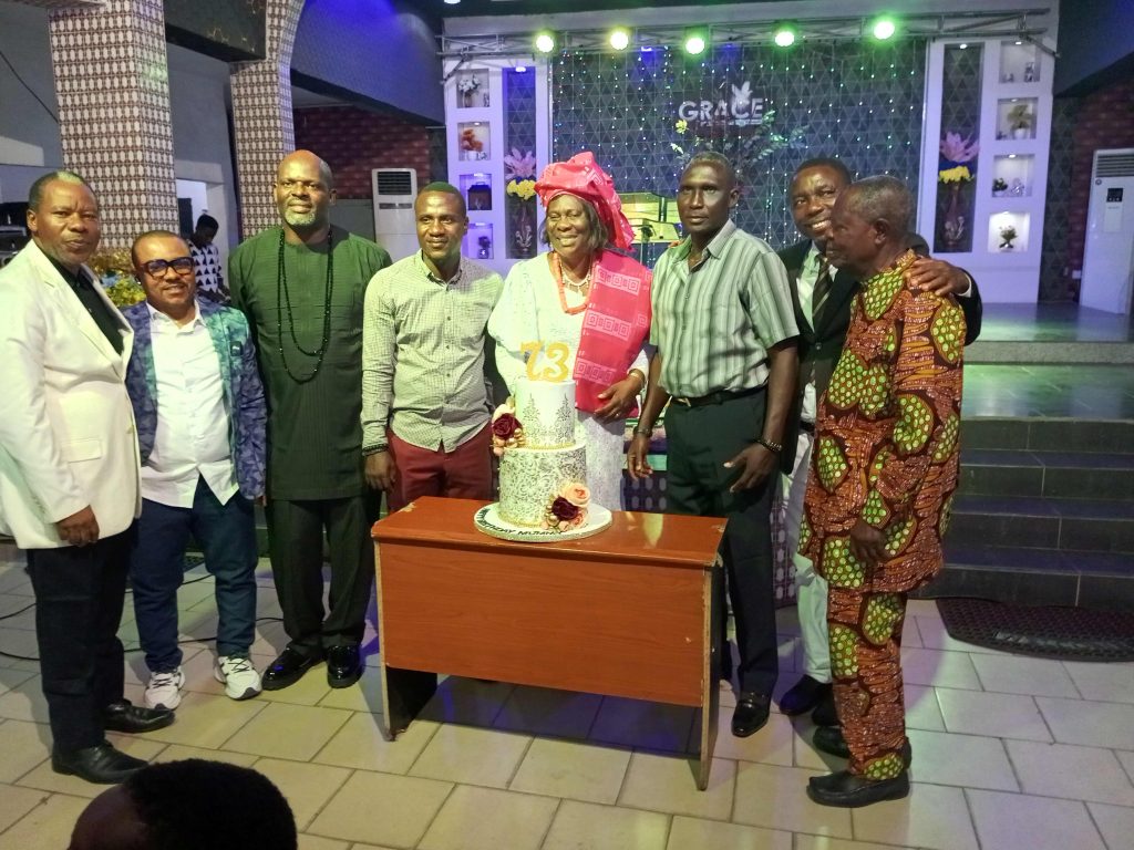 L-R: Pastor Mrs. Felicia Omoboye (5th) flanked by other members of Christ The Living Church Ministry Inc. during the celebration of her 73rd birthday which coincided with mother’ s day on Sunday.