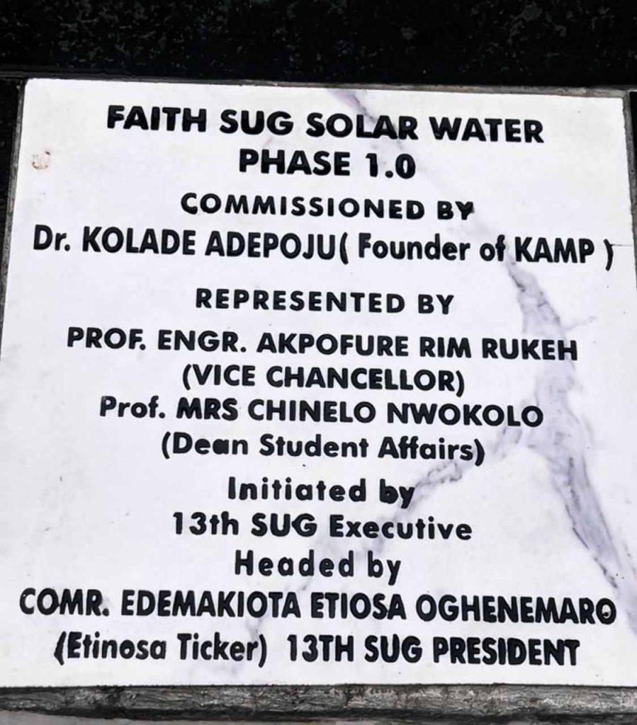 Part of the statement reads: “When I assumed office as the 13th SUG PRESIDENT, the girls go as far of getting water from host Community but with the special intervention of my team alongside Dr Kolade, the founder of KAMP, water has been provided”. The statement further said, the President and his Executive members had to embark on the project which seemed impossible at the beginning to fulfill his promises to the student community.